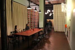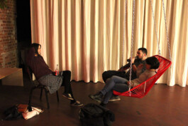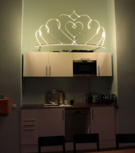 Our spatial design reflects all the related modes of being in the Residenz: A Foyer for welcoming audience, a work and social area for the producing artists and a meeting place for both groups for discussions and celebrations.